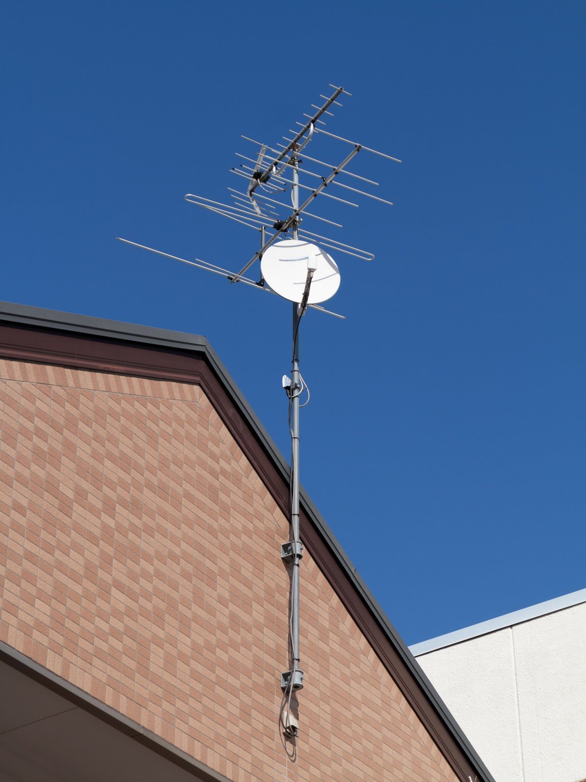 BSアンテナの設置や交換なども、茨城県ひたちなか市の大内電気工事店にお任せください。設置場所も屋根から屋上、ベランダ、壁面まで、あらゆる場所への施工に対応することが可能です。